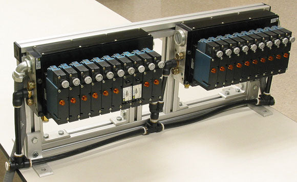 This COMPLETE twenty valve manifold system is mounted on a T-slotted