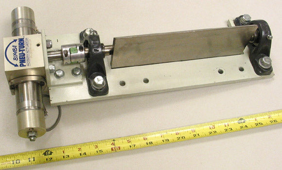 This assembly rotates a 9" x 3.2" flipper 90 degrees thru the use