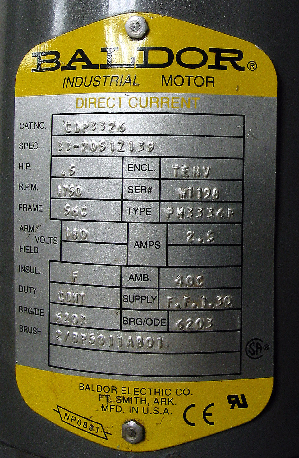 Baldor CDP3326 DC Motor .5 HP 1750 RPM