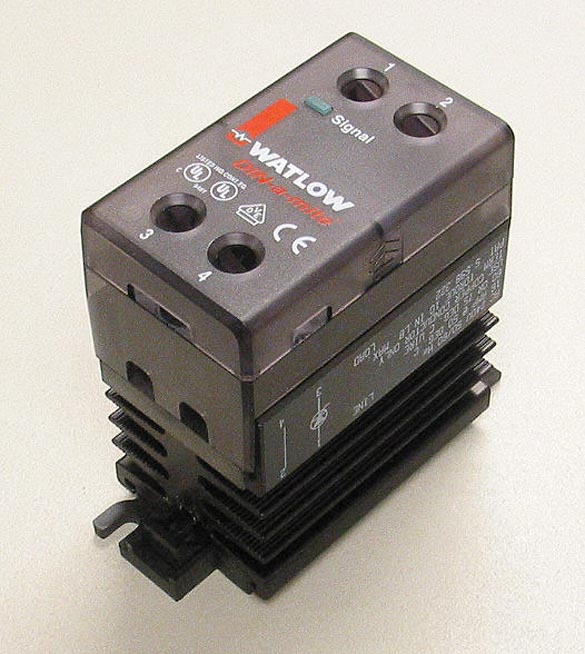 This solid state relay incorporates a ribbed Aluminum heat sink for better heat