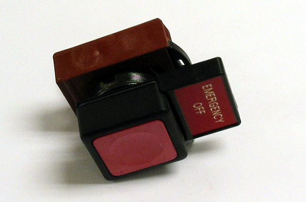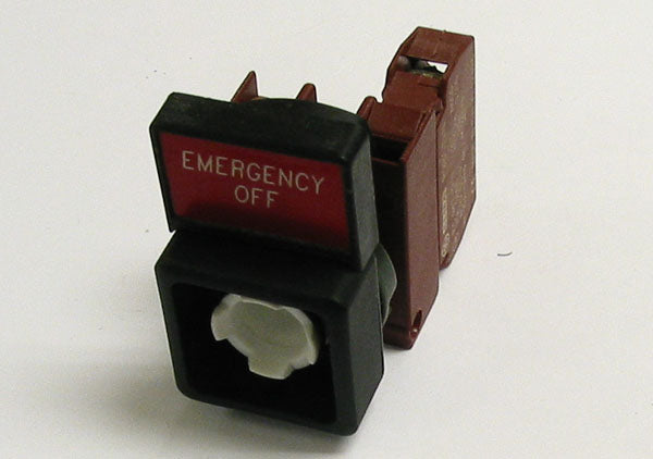 a green pushbutton and removable "EMERGENCY OFF" name tag.