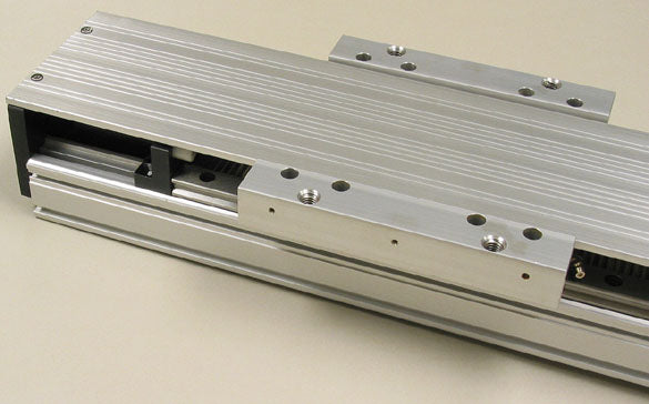 rides on THK A5E054 rails, has four 3/8-16 Helicoiled mounting threads,