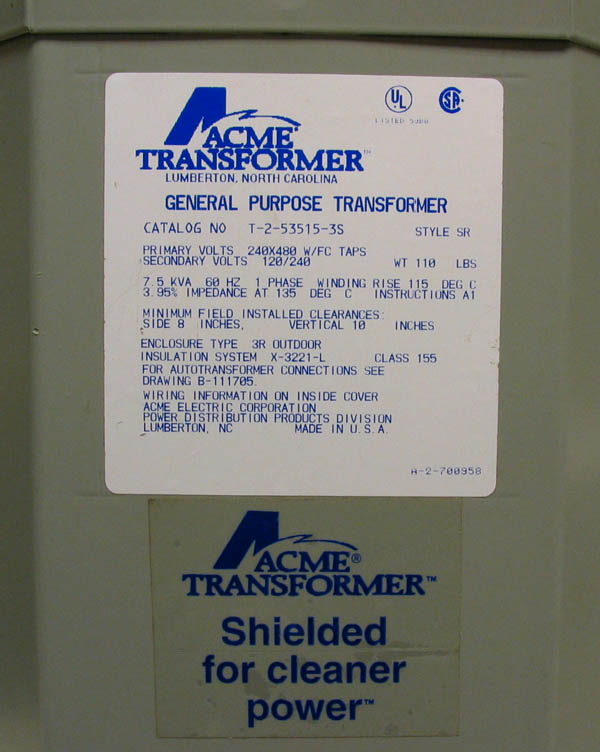This is a Acme General Purpose Transformer with the following specifications.