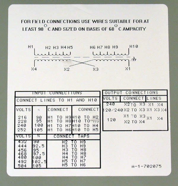 Primary input taps 216 / 228 / 240 / 252 or 432 / 444 / 456 / 468 / 480 / 492 / 504