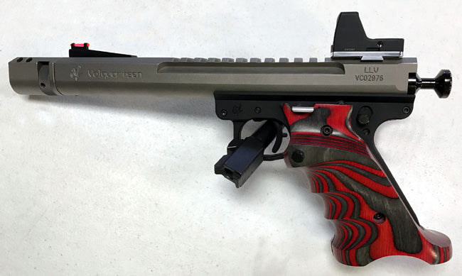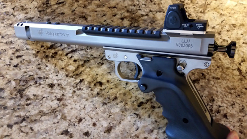 RMR red dot sight to the Volquartsen Scorpion by way of the factory dovetail on the barrel.