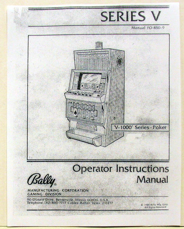 Bally FO-850-9 Video Poker V-1000 Series Manual
