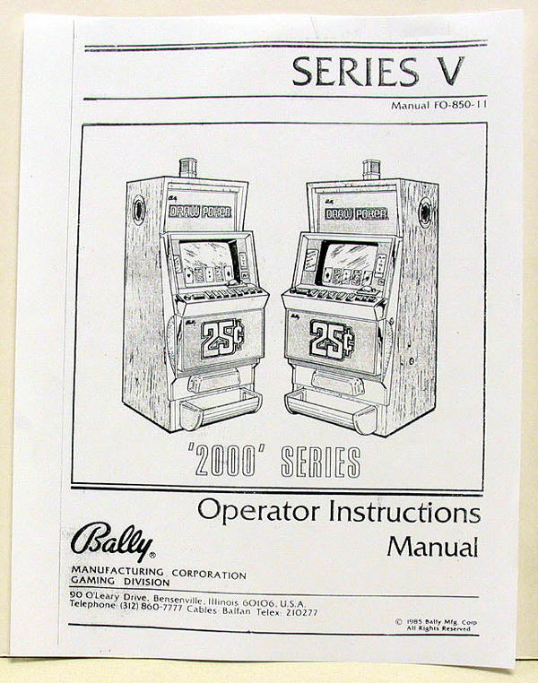 Bally FO-850-11 Video Poker V-2000 Series Manual